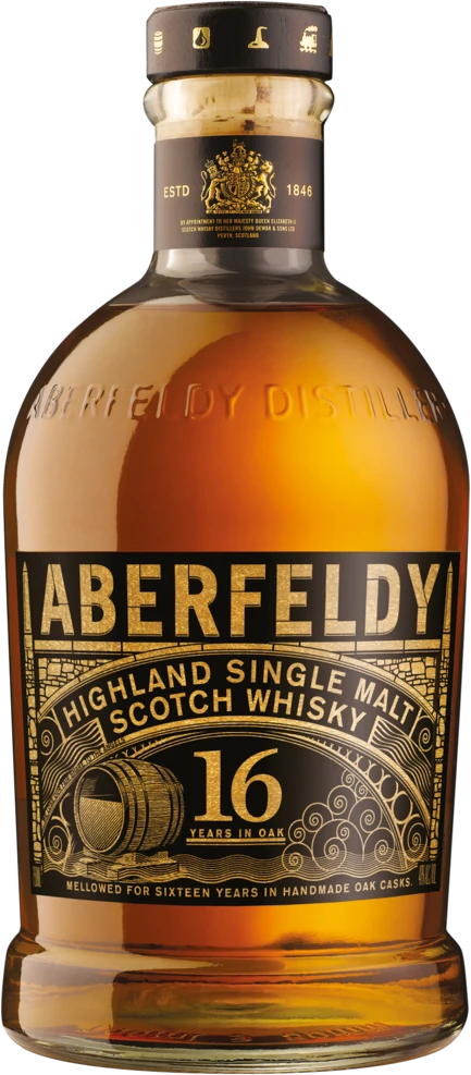 Der Aberfeldy 16 Jahre Highland Whisky kam 2015 als Teil der speziellen Kollektion Last Great Malts auf den Markt. Sein dunkler Farbton von Gold bis Bernstein und seine markant-elegante Produktpräsentation in Schwarz und Gold unterstreichen das hohe Niveau des Single Malts. Der Aberfeldy 16 Jahre Highland Whisky reifte zwar nicht sehr lang, doch er hat viel zu bieten. Das liegt nicht zuletzt daran, dass er einem Finishing im Oloroso-Sherryfass aus Spanien unterzogen wurde. Diese Nachreifung hat sich auf das Trinkerlebnis ausgewirkt.