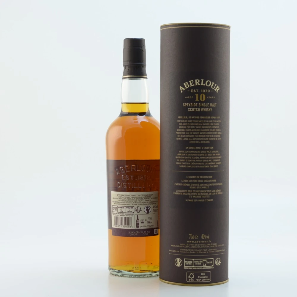 Der Aberlour 10 Jahre Whisky reift für 10 Jahre in ausgesuchten Fässern. Im Falle dieser Spirituose sind es Sherry- und Bourbonfässer, die zusammen eine unglaubliche Aromenvielfalt bilden und diese auch an den Whisky weitergeben. In der Nase glänzt der Tropfen mit einem frischen Malvenaroma. In der Tiefe duftet er leicht nach Sherry und Vanille. Frische Gewürze und ein Hauch von Zimt unterlegen diesen Eindruck. Im Geschmack zeigt sich der Aberlour 10 Jahre Whisky von einer ebenso vielfältigen wie milden Seite. Noten von Malz und Sherry verwöhnen den Gaumen nachhaltig und sind auch im Abgang zu finden.