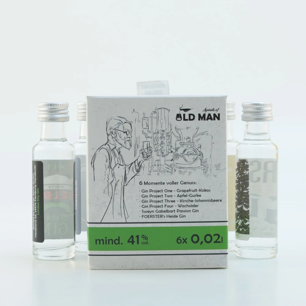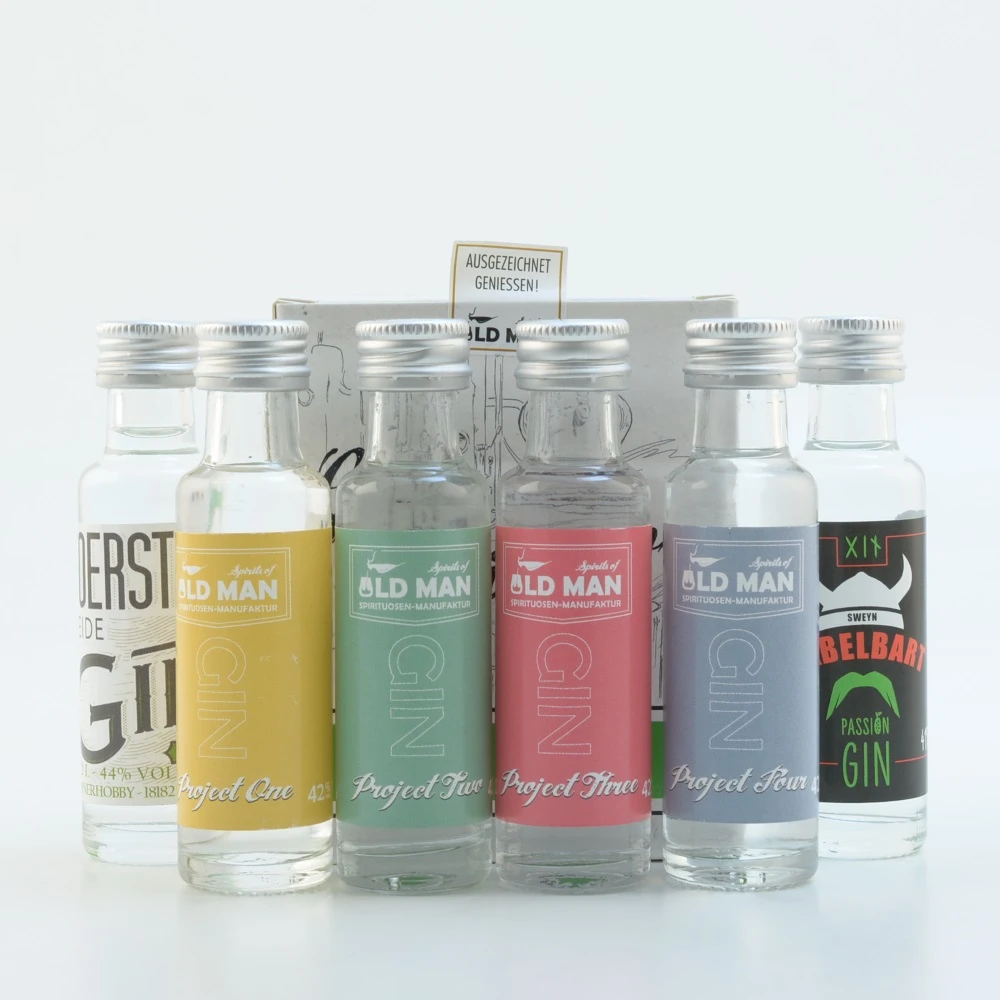 Gin bietet dem Hersteller unglaublich viel Spielraum für Kreativität. Immerhin gibt es weit mehr als 100 pflanzliche Komponenten, die sich theoretisch für die Aromatisierung des neutralen Alkohols eignen. An das Experiment wagen sich auch immer mehr Hersteller von Gin aus Deutschland wie die Firma Old Man Spirits GmbH, die sich eigentlich mit feinstem Rum einen exzellenten Ruf erarbeitet hat. Ihr deutscher Gin zeigt sich immer wieder von der leicht anderen Seite. Um all diese Facetten kennenzulernen, empfiehlt sich die 6-teilige Gin Tastingbox by Spirits of Old Man. Für erste Erfahrungen, zum Verschenken oder für Kenner ist dieses Gin-Set genau das Richtige.