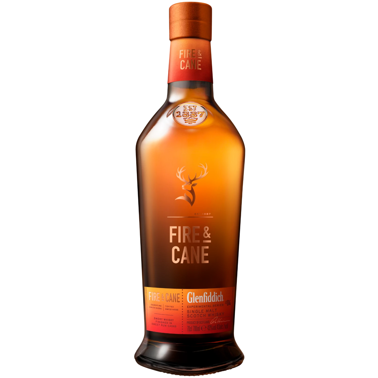 Der ohne Age Statement veröffentlichte Glenfiddich Fire & Cane Experimental Series Whisky schließt sich den bisher innerhalb der Linie veröffentlichten Abfüllungen IPA und Project XX aus 2016 sowie Winter Storm aus 2017 an. Wie seine Vorgänger sollte er als faszinierende Klasse für sich betrachtet werden. Das Finishing in Rumfässern hat dem edlen Tropfen eine gewisse Süße und fruchtige Finesse verliehen. Der vollmundige, charmante Glenfiddich Fire & Cane Experimental Series Single Malt Scotch Whisky mit dem rauchigen Beiklang übertreibt es mit dem Torfgehalt nicht. Er sollte pur genossen werden, damit man ihn in aller Ruhe auf sich wirken lassen und seinen unverwechselbaren Charakter entdecken kann. Die Flasche mit Farbverlauf von Braun über Gold bis klar setzt ihn schön in Szene.