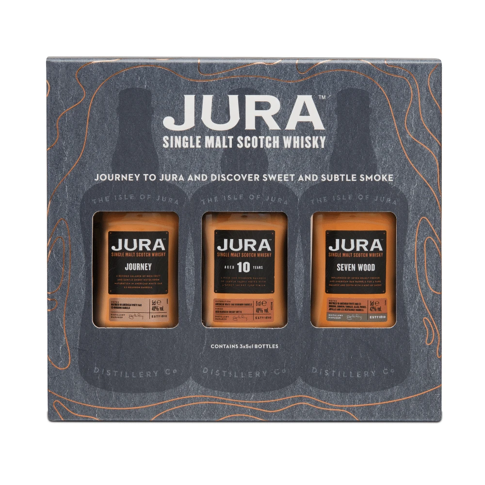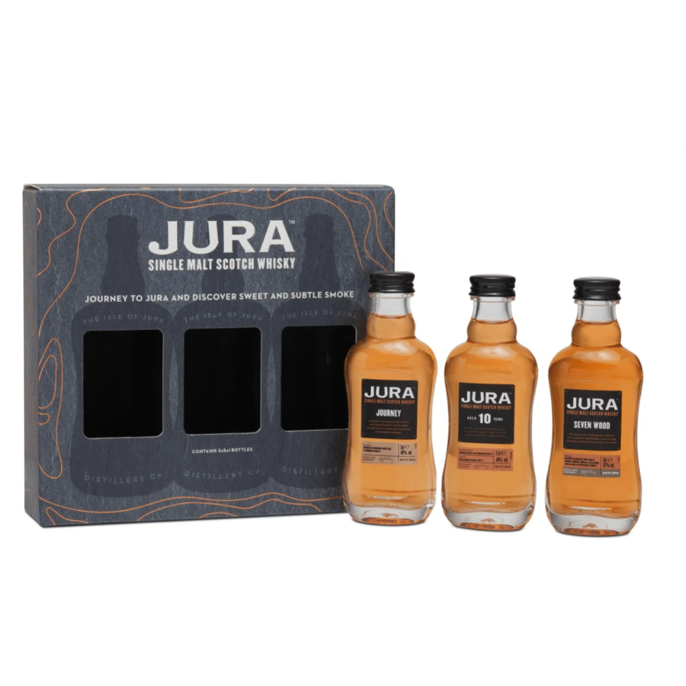 Charakterstarker schottischer Whisky wird nicht nur auf dem Festland in diversen Whiskyregionen hergestellt. Auch auf den zu dem Land gehörenden Hebrideninseln blickt die Herstellung von Whisky aus Schottland eine jahrhundertelange Tradition zurück. Wir meinen damit nicht nur den allseits bekannten Whisky aus Islay, sondern unter anderem auch den Whisky von der Insel Jura. Hergestellt wird er von der gleichnamigen Destillerie, deren Sortiment man mit dem Isle of Jura Mini Set kennenlernen kann. In diesem Whisky-Set sind drei Mini-Flaschen mit jeweils 5 cl enthalten, was sich prima für ein Whisky-Tasting und zum Probieren eignet.