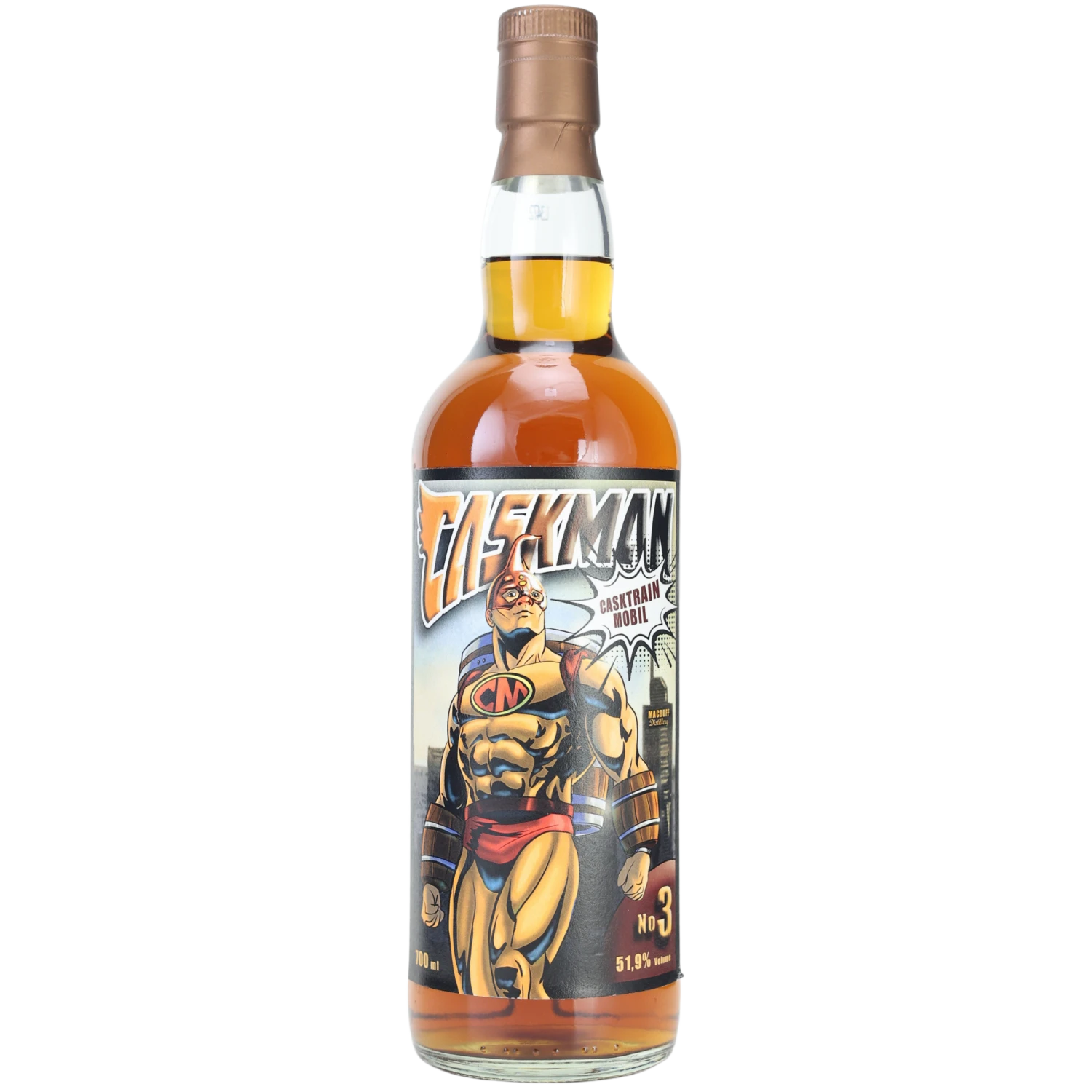 Schottischer Whisky ist nicht nur als der Klassiker schlechthin in den verschiedensten regulären Versionen erhältlich, sondern auch in spannenden limitierten Sondereditionen. So kümmern sich neben zahlreichen Destillerien in mehreren Whiskyregionen auf dem Festland und auf den Inseln diverse unabhängige Abfüller um den Scotch. Einer solchen Firma haben wir den vielversprechenden Macduff 10 Jahre Whisky – Caskman #3 zu verdanken. Die Limited Edition ist auf insgesamt nur 180 Flaschen begrenzt und präsentiert sich als eine Art Superheld der Spirituosenindustrie. So greift man den Caskman in Anlehnung an Superman oder Batman mit einer heldenhaften Figur auf dem Label auf, in die auf clevere Weise Whiskyfässer integriert wurden. Dementsprechend hat das Auge bei diesem Single Malt am Genuss Teil.